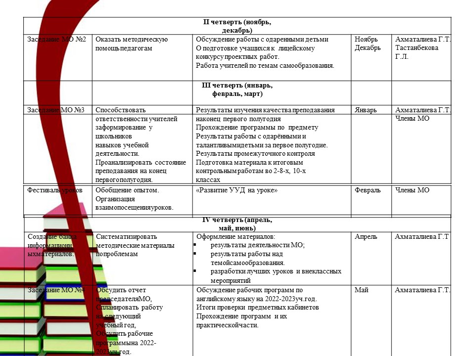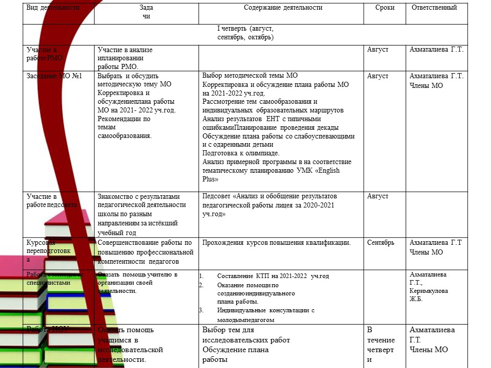Мектептің жылдық жоспары