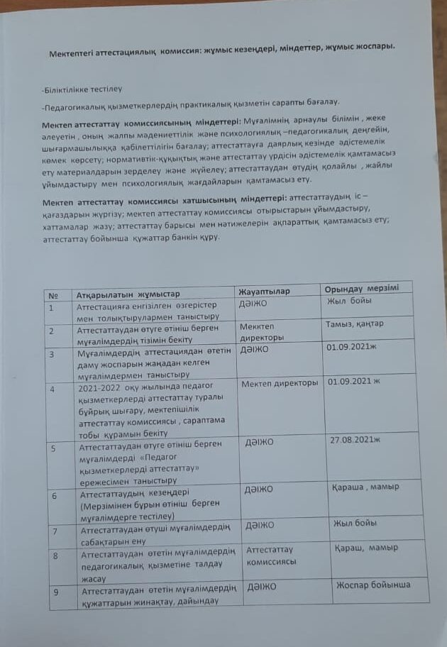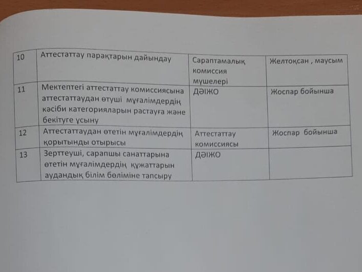 Аттестаттау бойынша өзін-өзі бағалау жоспары